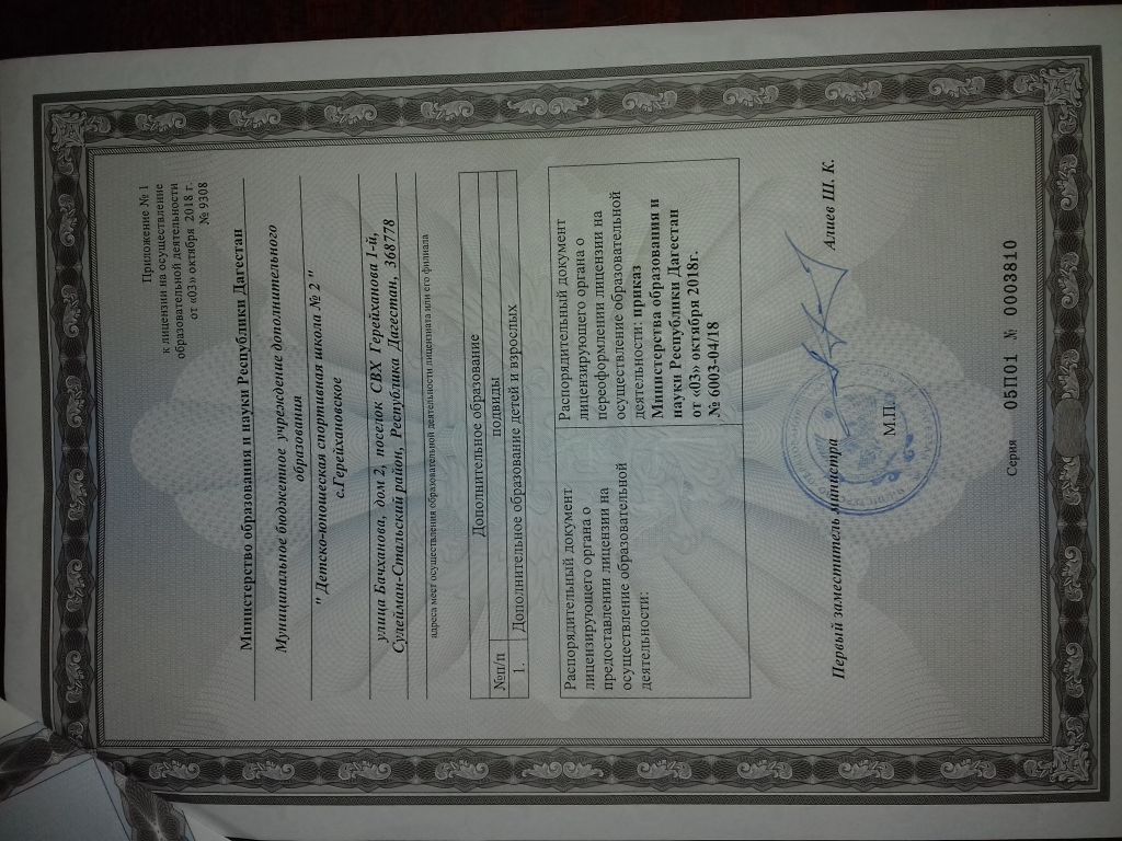 | Сокращенное наименование образовательной организации* | МБУДО "Детско-юношеская спортивная школа вольной борьбы" с. Герейханова |