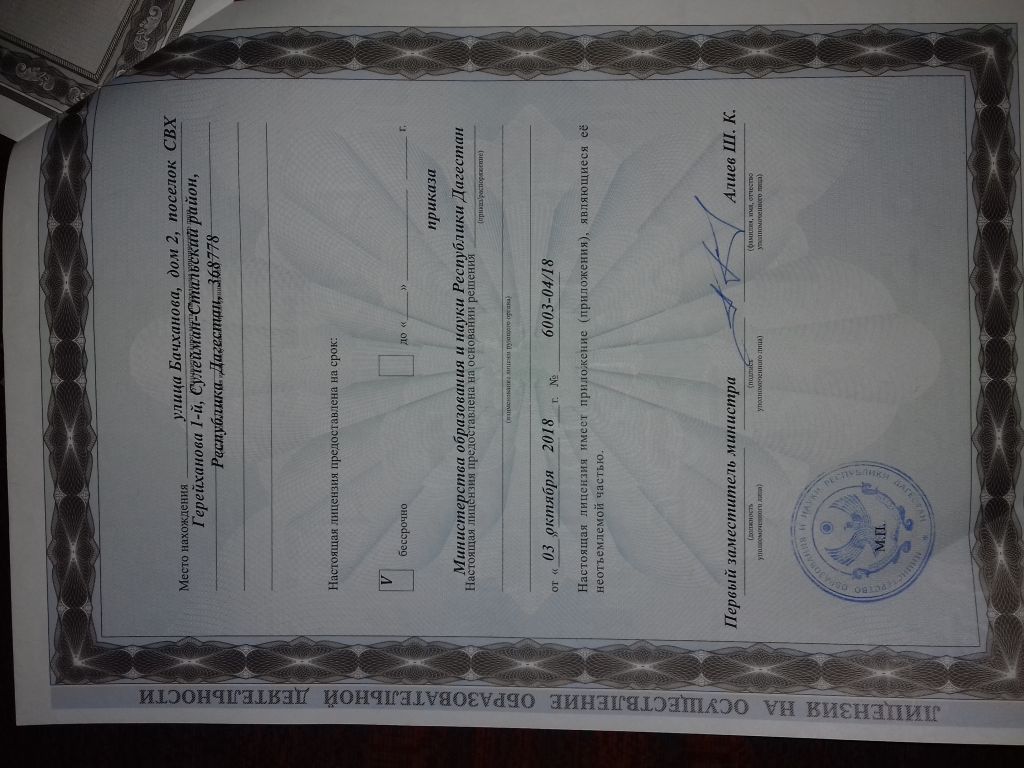 | Адрес местонахождения образовательной организации* | Республика Дагестан, Сулейман-Стальский район, с.Герейханова 1 отд. |